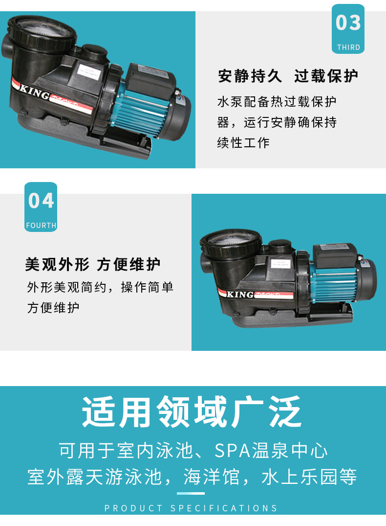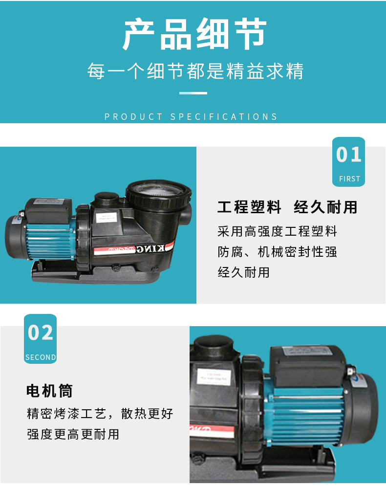 - 根據(jù)水力學(xué)原理設(shè)計(jì)的泵體,泵體、葉輪采用高強(qiáng)度工程塑料,經(jīng)久耐用。濾藍(lán)容量大,大大減少了清洗工作。性能好,效率高,加快了注水(灌溉)速度并提高了能源效率。適用于各種泳池、工業(yè)用水、海洋館、水上樂園等。